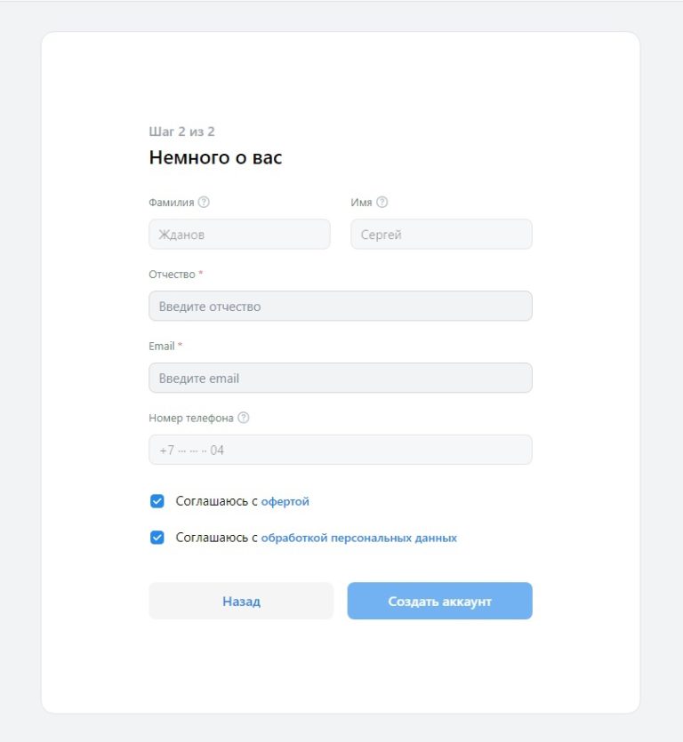 - Заполните данные о себе и нажмите кнопку «Создать аккаунт».