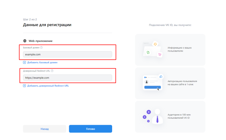 На платформе можно настроить авторизацию через аккаунт «ВКонтакте». Для этого вам нужно перейти в сервис «VK ID» и зарегистрировать приложение.
