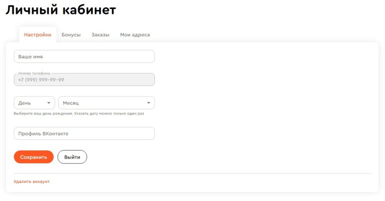 Личный кабинет: убрали подписи к номеру телефона и имени, уменьшили высоту строк ввода.