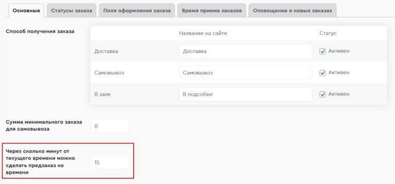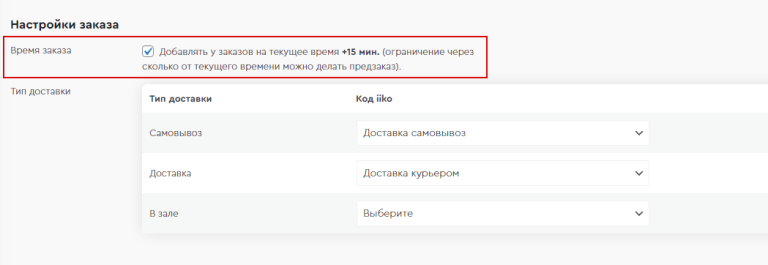 Добавили галочку в общие настройки iiko. Ранее к заказам на текущее время при передачи в iiko прибавлялось время, которое указано в настройках заказа админ-панели.