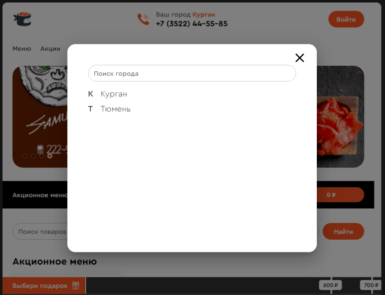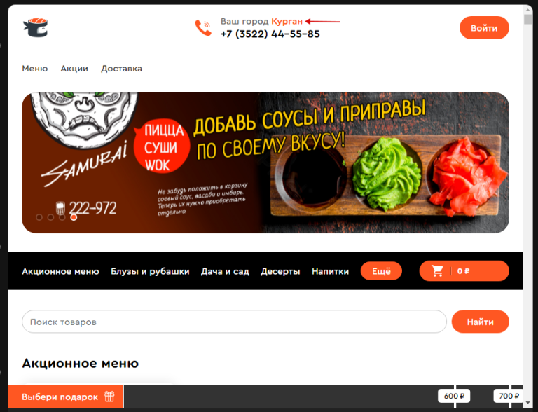 Для перехода на другой филиал нажмите на название города в шапке, после этого откроется окно с выбором филиала.