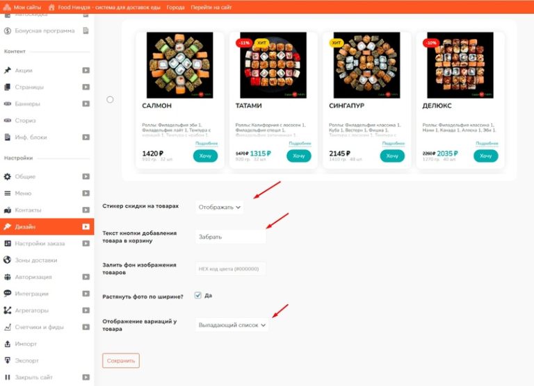1. Отключать / включать отображение стикера «скидки» у товаров.