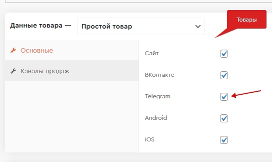 - Можно выводить товары только для канала продаж Telegram.