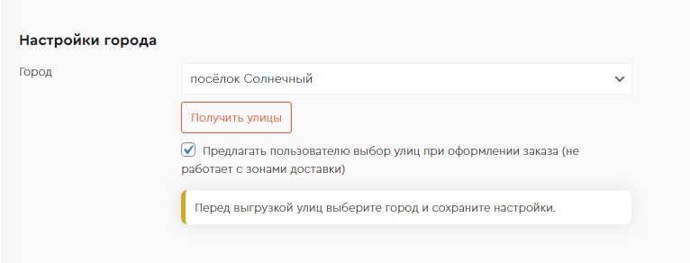 - Выберите «Предлагать пользователю выбор улиц» и нажмите «Сохранить»