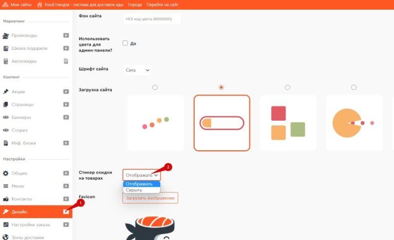 Добавлен выбор отображать или нет стикер скидки на товарах (1). Настройка показана на слайде №2.